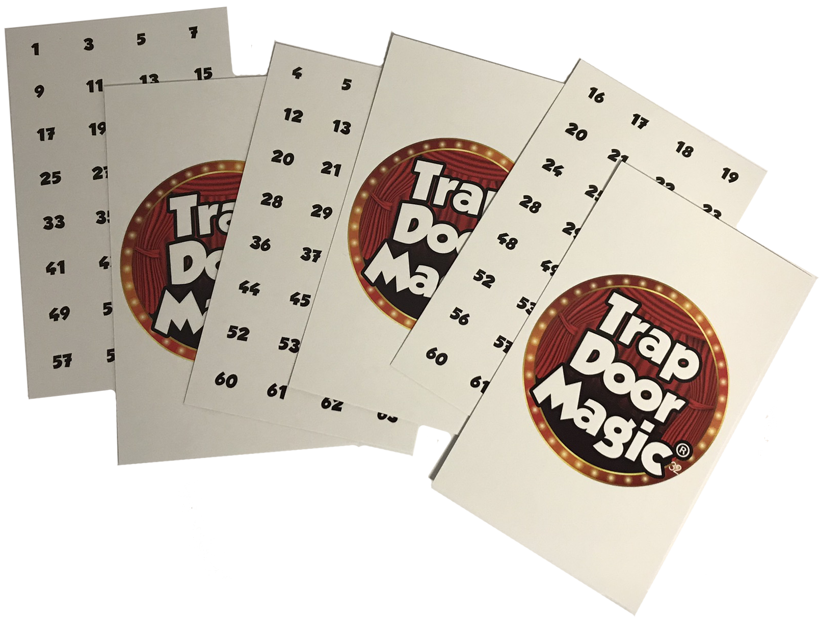 The magician shows 6 cards to the spectator. Each of the cards has about 30 different numbers on it ranging from 1 to 63. No two cards are alike.